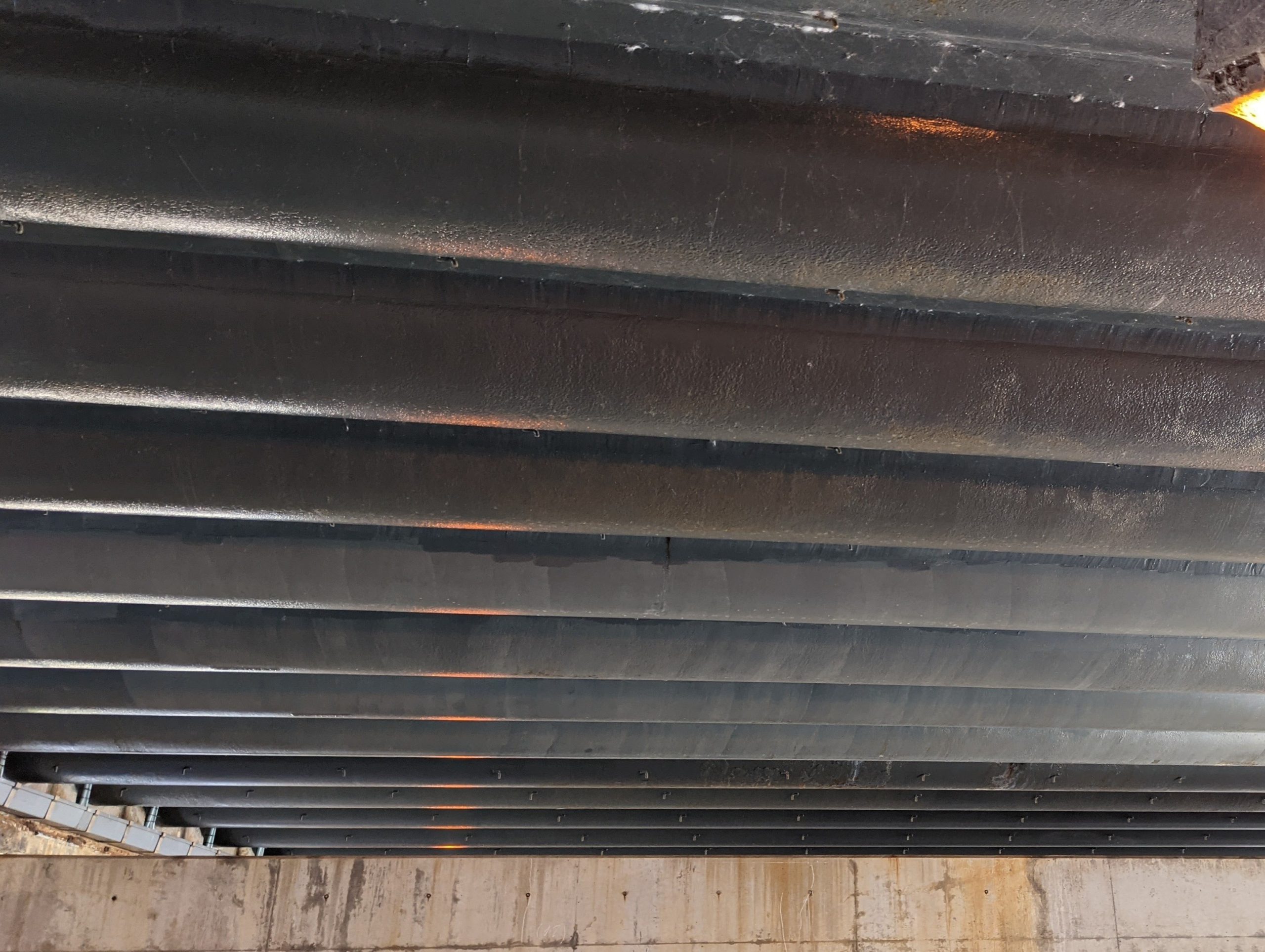アンダーパス上部に設置されたパイプルーフの防食工事を実施しました。冬季には腐食により発生する漏れや結露が原因でつららが形成され、通行車両への危険性や交通の妨げが課題となっていました。これらを解決するため、当社の防食塗料「ラスタッフ2100シリーズ(採用品:ラスタッフ2110)」を用いて、防食改修工事を行いました。